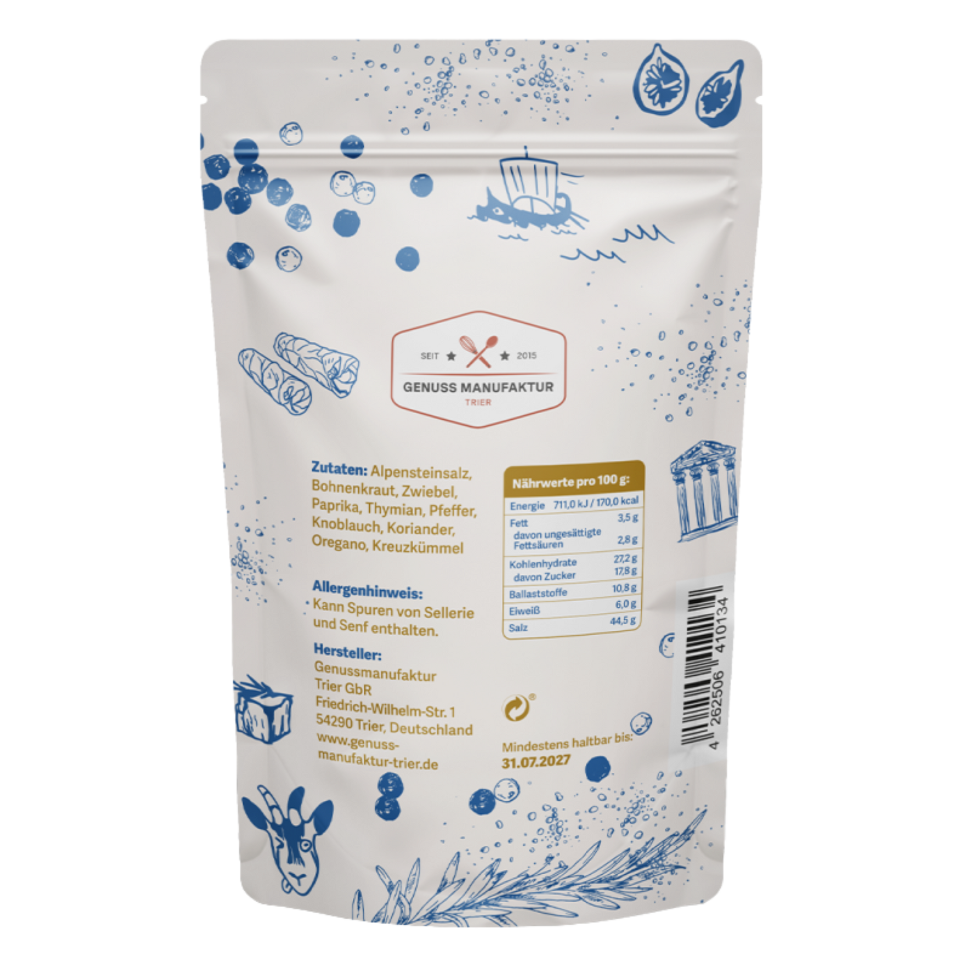Wow! Endlich sind die Produkte der Genussmanufaktur Trier auch bei uns erhältlich! Mit „Cheatcode Griechenland“ holst du dir den authentischen Geschmack mediterraner Küche direkt nach Hause. Ob für Fleischgerichte, Fisch oder Gemüse – diese Gewürzmischung verleiht Ihren Speisen das typische Aroma Griechenlands. Perfekt für Klassiker wie Gyros, Bifteki oder Moussaka – oder für kreative, moderne Interpretationen mediterraner Gerichte.