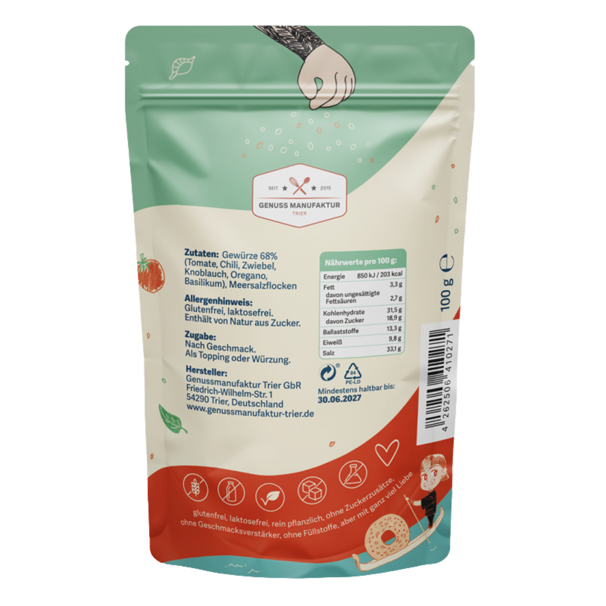 Wow! Endlich sind die Produkte der Genussmanufaktur Trier auch bei uns erhältlich! Mit „Nicolywood Italian Style“ bringst du die Sonne Italiens und mediterrane Aromen direkt auf deinen Teller — ideal für Pasta, Pizza, Ofengemüse, Antipasti, Grillgerichte, Brot oder mediterrane Salate. Diese Gewürzmischung verleiht deinen Gerichten ein perfektes italienisches Aroma: würzig, aromatisch und voller Geschmack wie aus der italienischen Heimatküche.