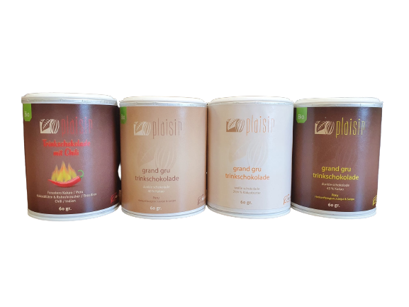 With the Plaisir Organic Drinking Chocolate Tasting Set, you can experience the full chocolate indulgence in four finely tuned varieties: Dark Chocolate, White Chocolate, Milk Chocolate, and Chili. Each variety comes in a convenient 60g serving size and is made with high-quality organic cocoa beans from Peru (Juanjui & Satipo).