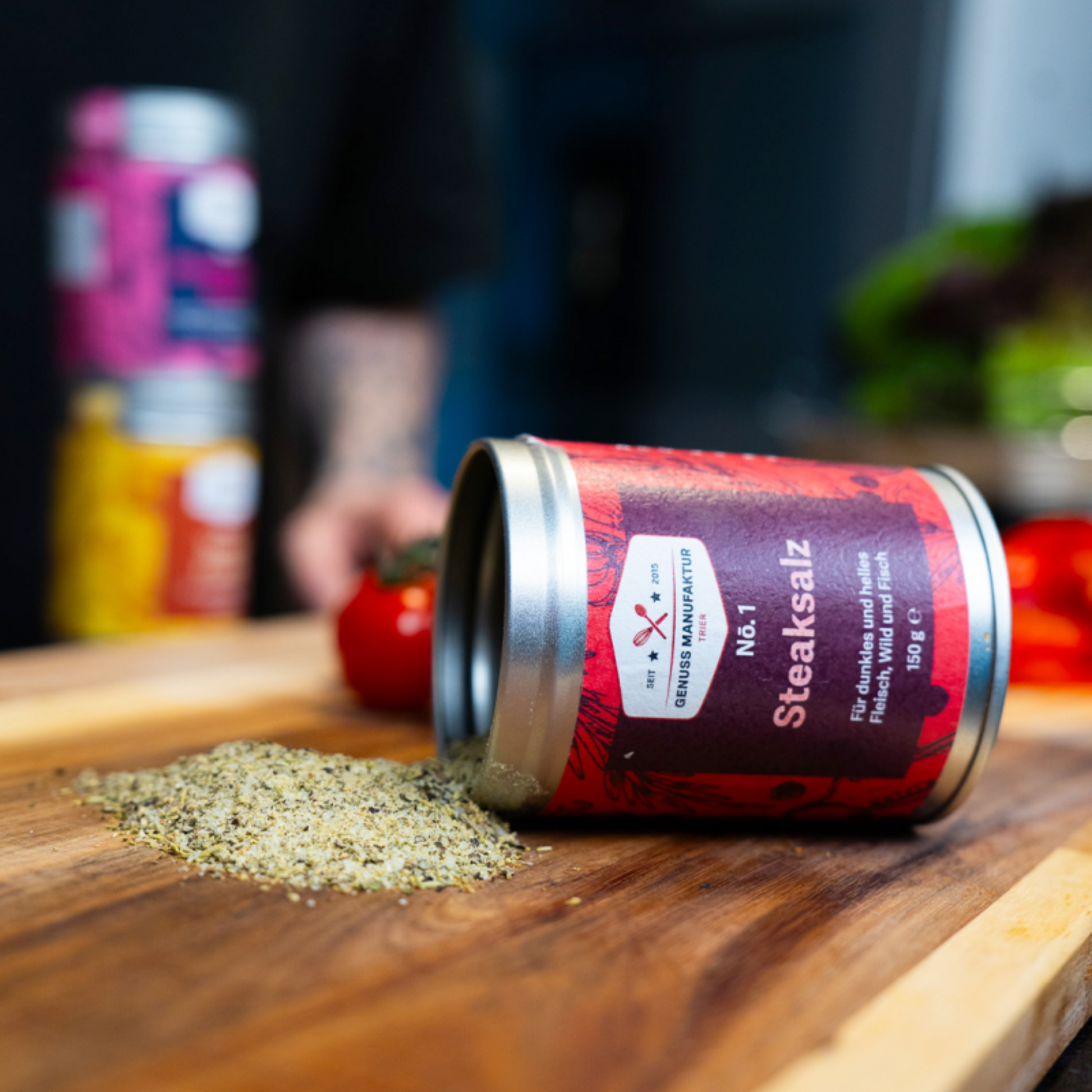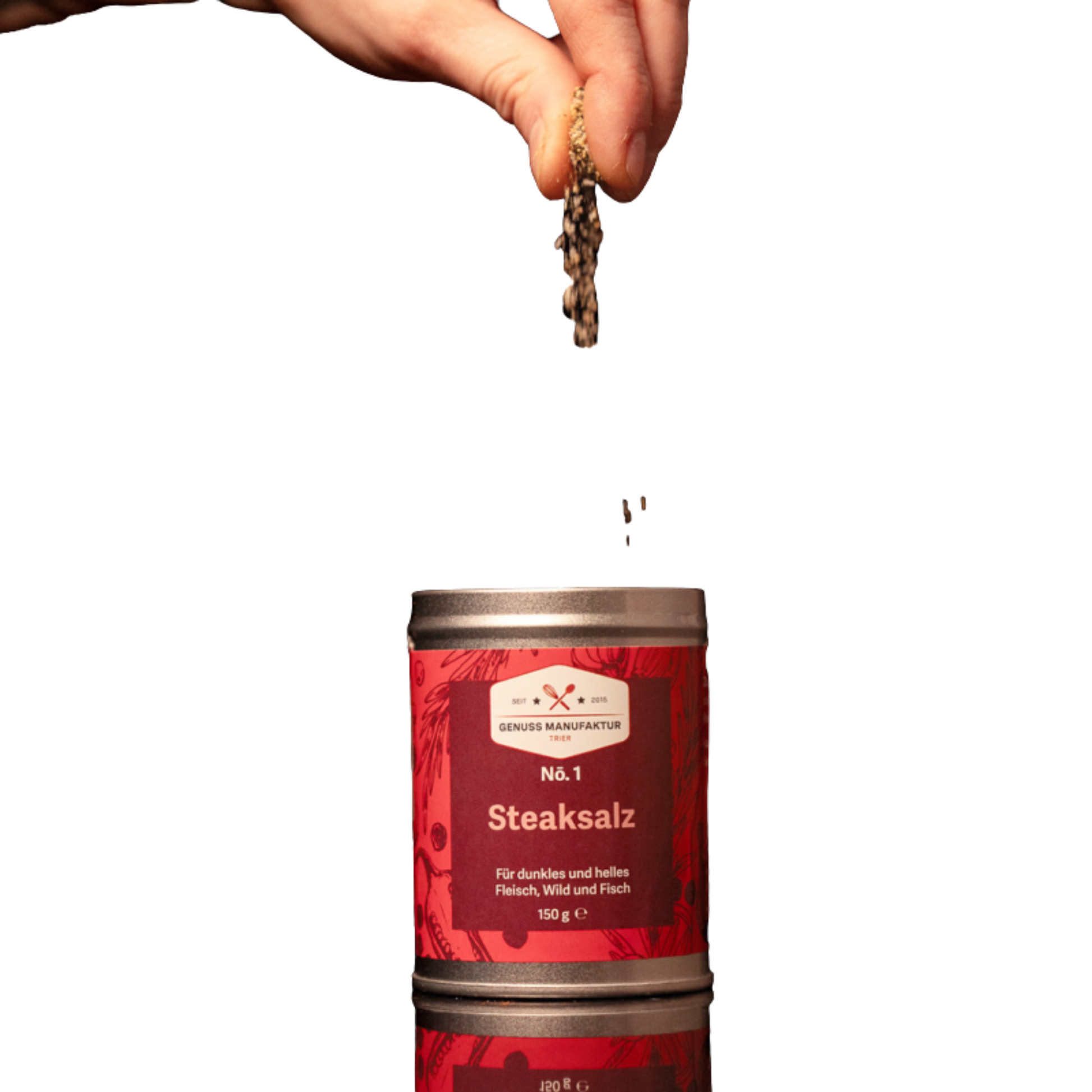 Wow! Endlich sind die Produkte der Genussmanufaktur Trier auch bei uns erhältlich! Mit „Steaksalz“ holst du dir den intensiven, kräftigen Geschmack direkt auf den Grill oder in die Pfanne. Diese Gewürz-Salz-Mischung ist ideal für saftige Steaks — aber nicht nur. Auch Pasta, Kartoffelgerichte oder sogar Fischgerichte gewinnen durch den würzigen Pfeffer-Kick und eine aromatische Würze.