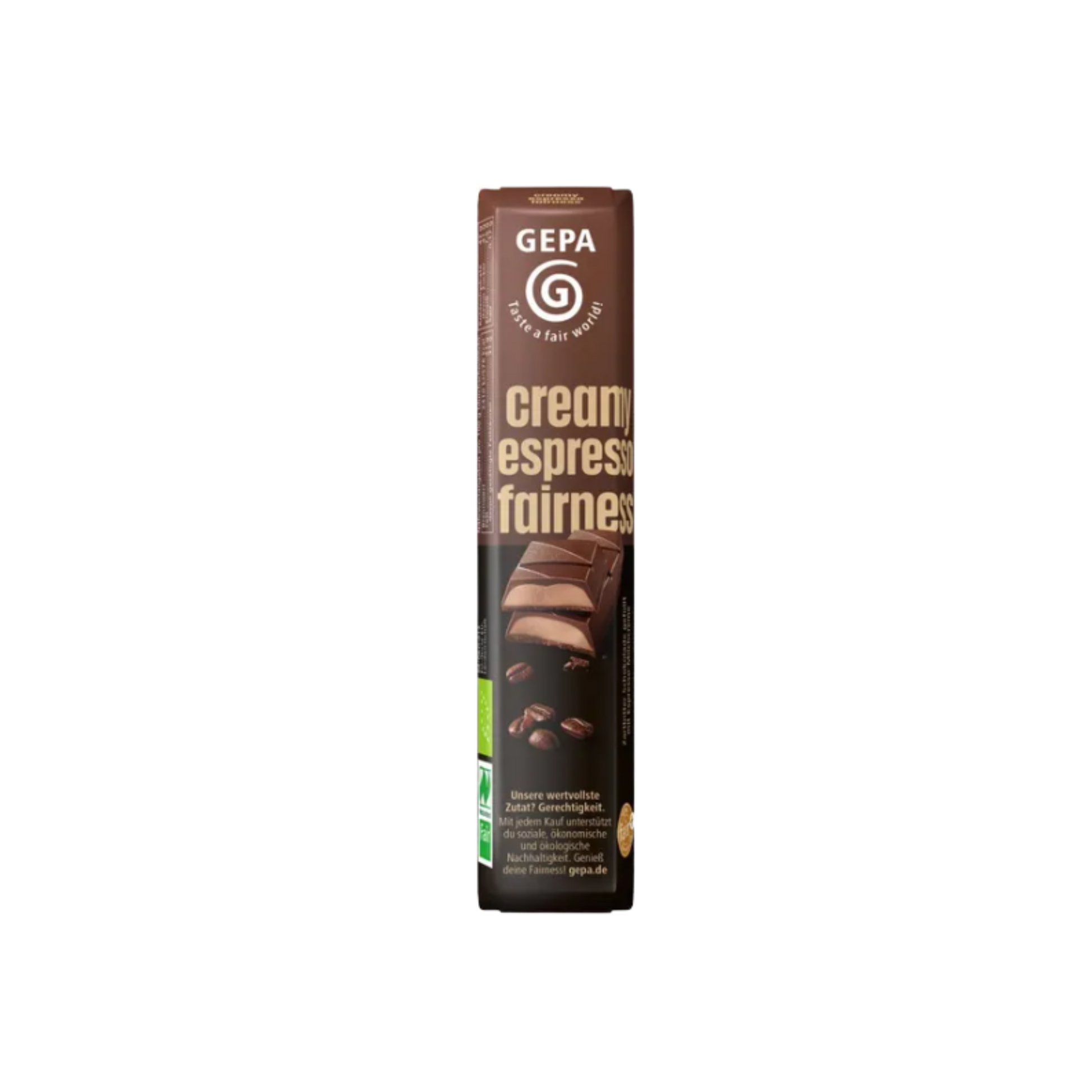 Entdecke die perfekte Harmonie zwischen intensiver Zartbitterschokolade und samtiger Espresso-Milchcremefüllung – ohne künstliche Emulgatoren. Mit Mascobado Vollrohrzucker für eine besonders natürliche Süße und fairer Naturland-Milch aus Süddeutschland. Schonend conchiert und nachhaltig verpackt (Papier außen, heimkompostierbarer Innenwickel). 100 % Fairtrade. Genuss, der Gutes bewirkt.