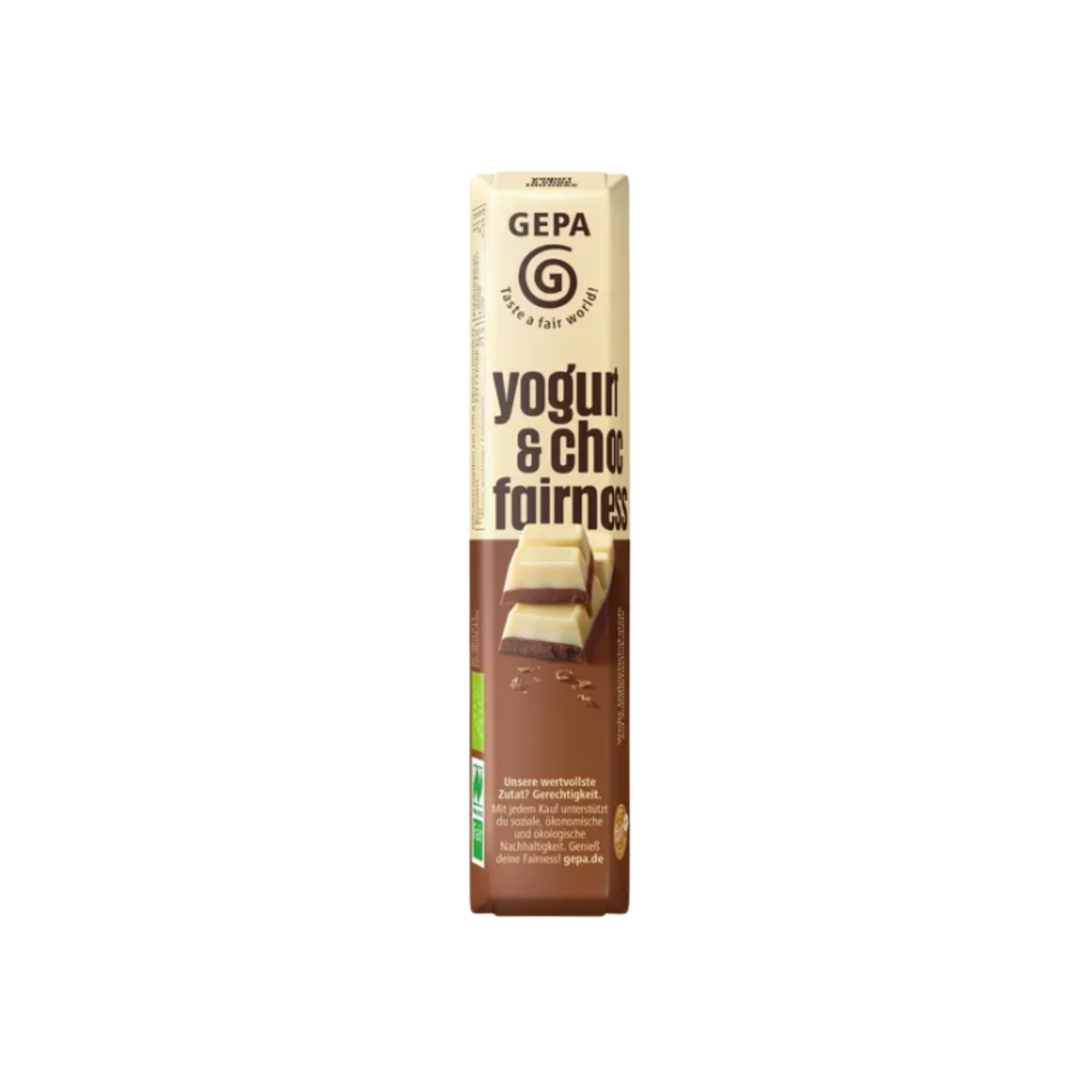 Ein einzigartiger Schokoriegel, der zwei Schokoladenwelten elegant vereint: cremige weiße Joghurt-Schokolade trifft auf feine Vollmilchschokolade. Knackig im Biss, zart im Schmelz – mit fairer Naturland Bio-Milch aus Süddeutschland, schonend conchiert ohne Emulgatoren, mit Zutaten aus Direktimport (Dominikanische Republik, Bolivien, Paraguay) und nachhaltig verpackt (Papier außen, kompostierbarer Zellulose-Innenwickel). Der Fairtrade-Anteil ist mit 83,5 % hoch – ein Genuss mit sozialer Verantwortung.