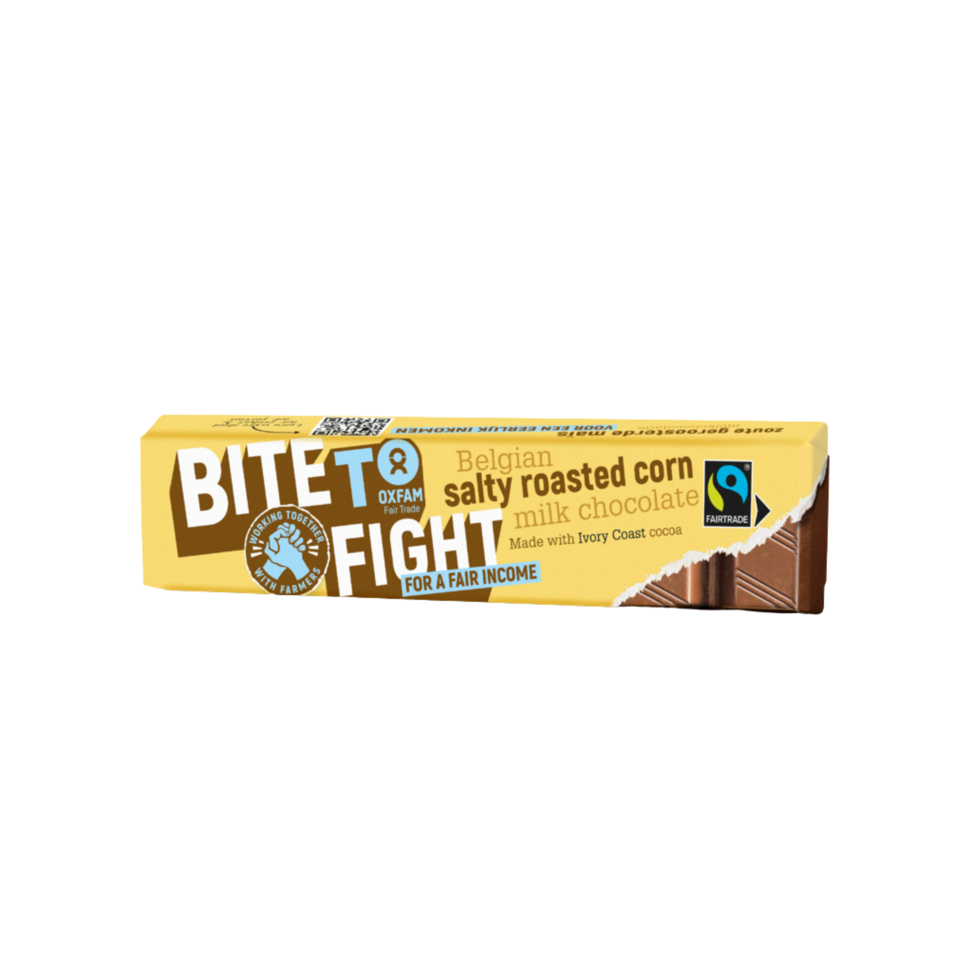 Dieses Produkt ist Teil der Bite to Fight-Kampagne . Wie? Oxfam Fair Trade zahlt einen erheblichen Aufpreis für den Kakao in dieser Schokolade und trägt so direkt zu einer besseren Zukunft der Produzenten bei. Ein existenzsicherndes Einkommen für alle!